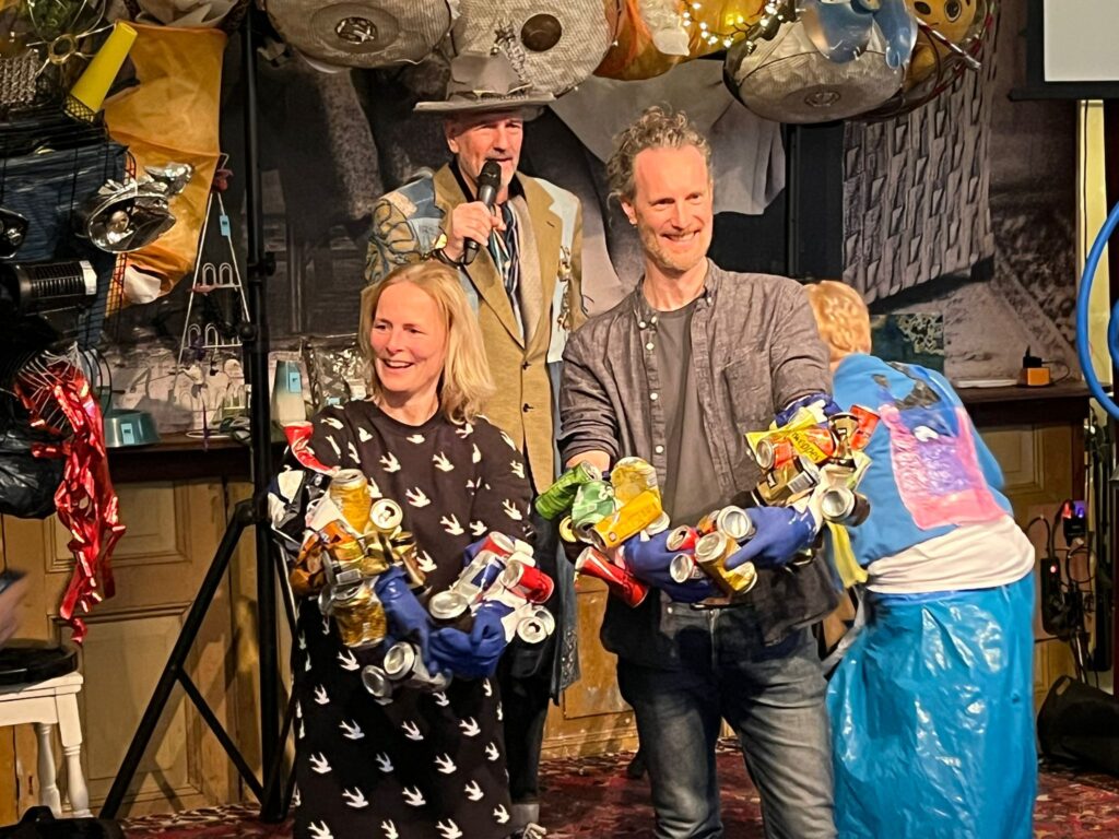 De show is een grappige manier om mee te leven met de problemen waar we allemaal tegenaan lopen bij circulair leven. Karton in Kleine openingen proppen, plakkerige blikjes recyclen, kapotte spullen en tweede leven geven?
